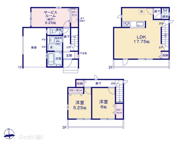 土地面積 64.23m² (実測) (19.43坪) 建物面積 105.15u