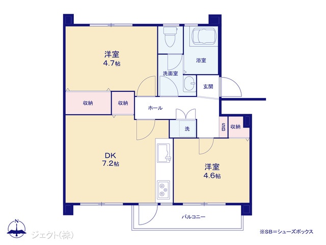 専有面積 | 46.2u | 間取り | 2DK (-) | ||